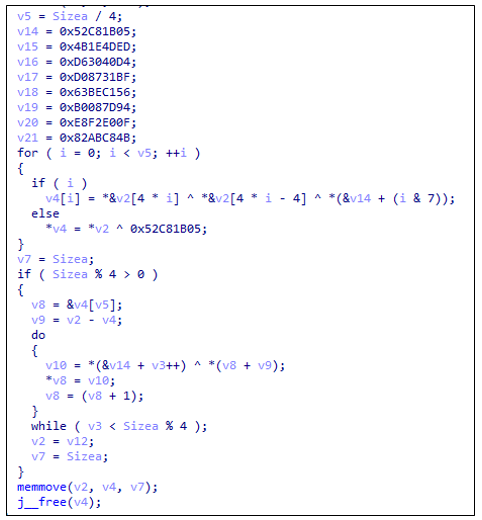 다운로드되는 파일들은 순환xor연산을 통해 복호화 한다.